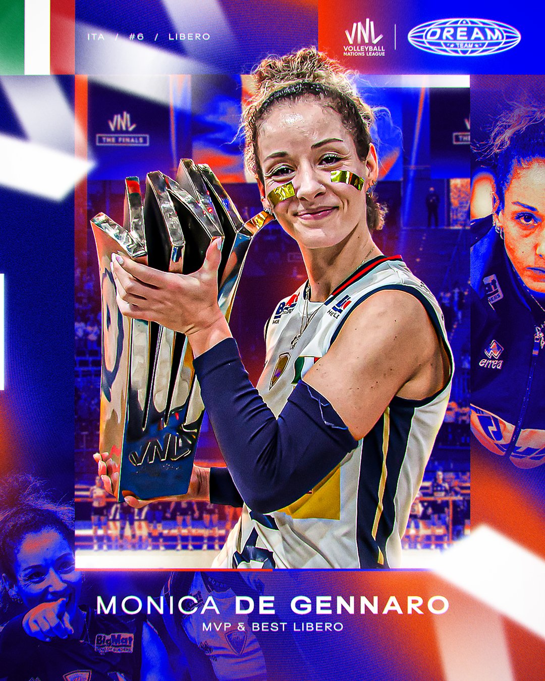 - Monica De Gennaro, najlepsza libero. 38-letnia weteranka siatkarskich parkietów po raz drugi została uznana za najlepszą zawodniczkę na swojej pozycji w VNL. Zagrała w 12 meczach i zanotowała 160 udanych obron oraz 39 dokładnych przyjęć.