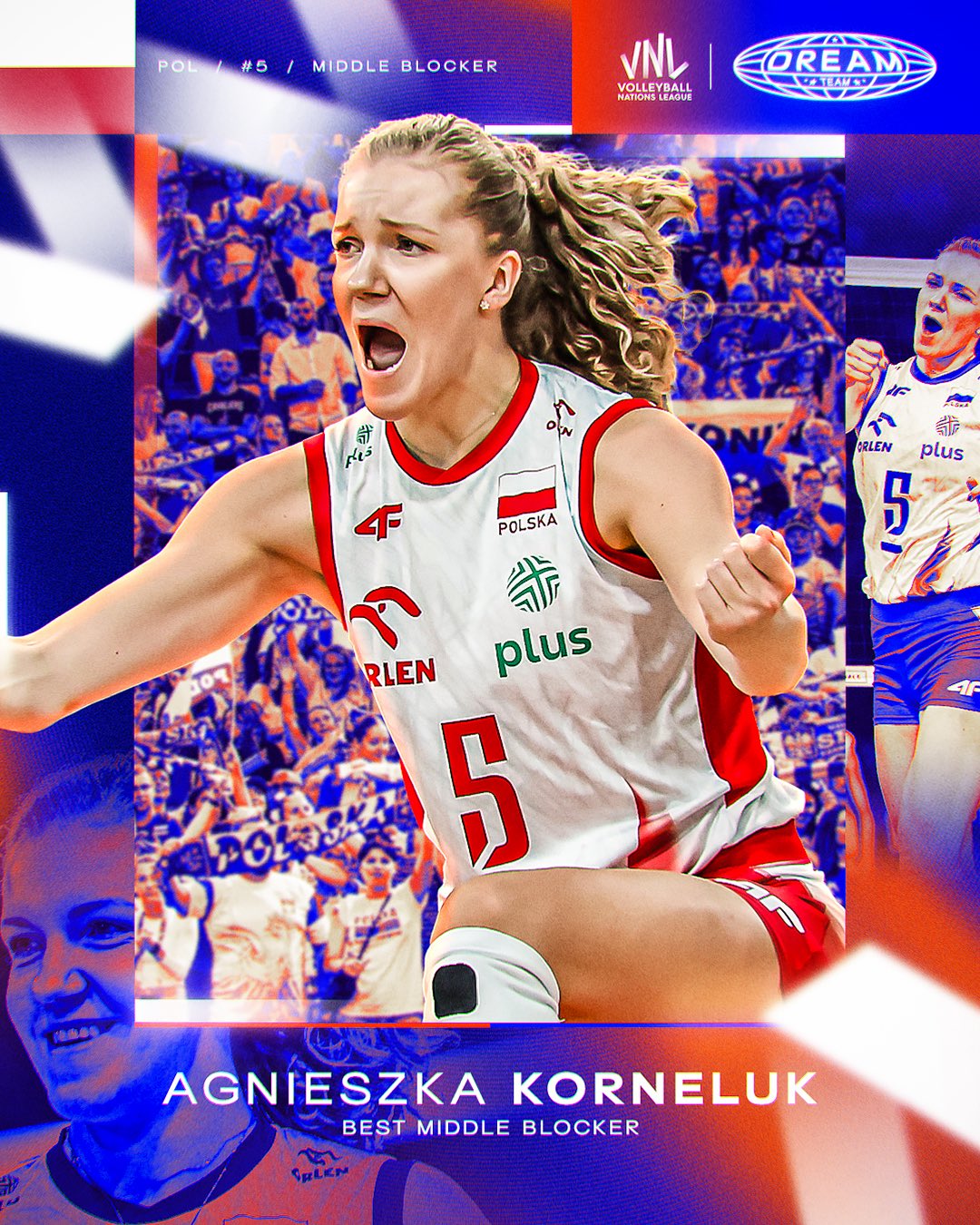 - Agnieszka Korneluk, kapitan Biało-Czerwonych, została uznana za jedną z dwóch najlepszych środkowych turnieju. 30-letnia siatkarka zdobyła 133 punkty (84 ataki, 45 bloków, 4 asy) w 11 meczach i była drugą najlepszą blokującą turnieju. To jej czwarty wybór do Drużyny Marzeń i trzeci z rzędu (wcześniej w 2018, 2023 i 2024).