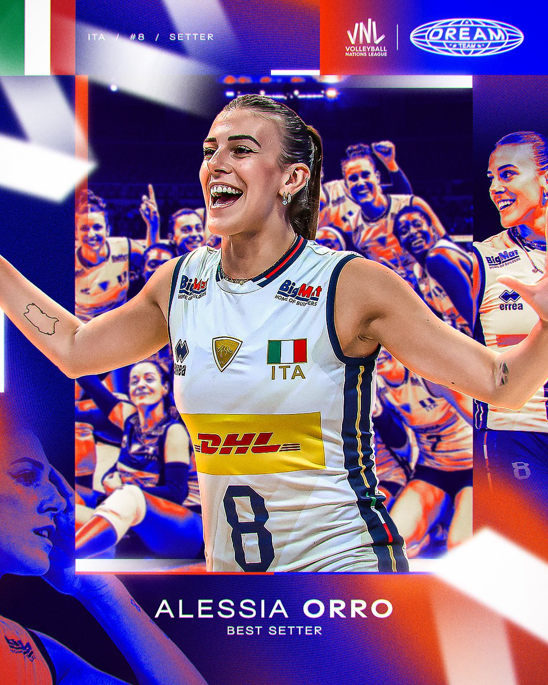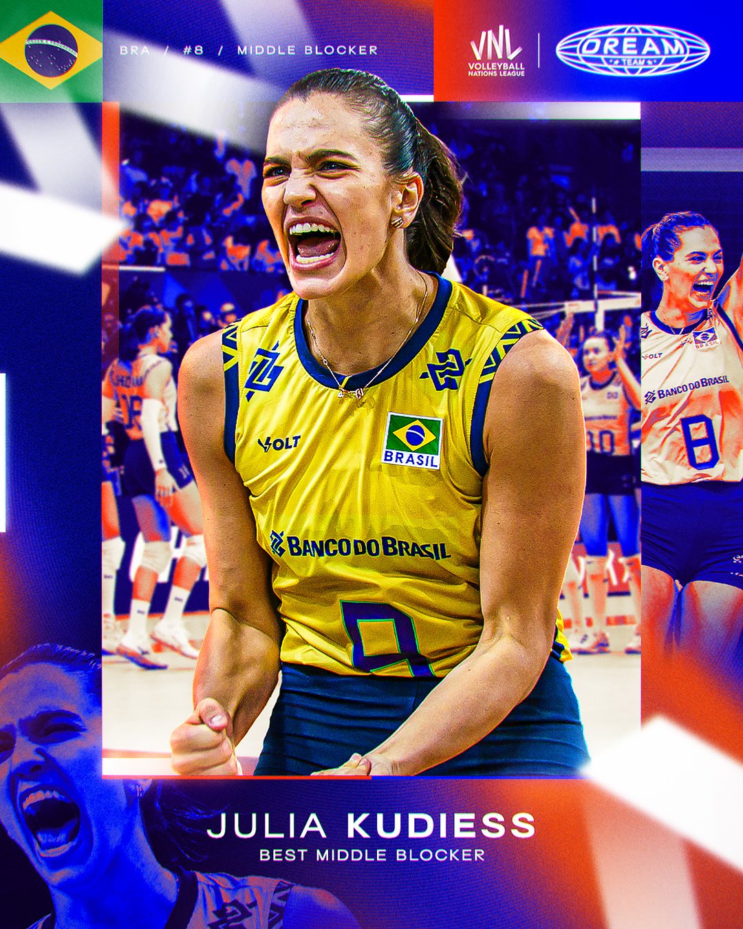 - Gabriela „Gabi” Guimarães, kapitan reprezentacji, została wyróżniona jako jedna z najlepszych przyjmujących. Dołączyła do zespołu w połowie sezonu, ale w 9 meczach zdobyła 112 punktów. To już jej czwarty wybór do Dream Teamu VNL.